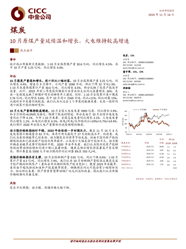 【中金公司】【20191114】煤炭:10月原煤产量延续温和增长,火电维持较高增速-5页