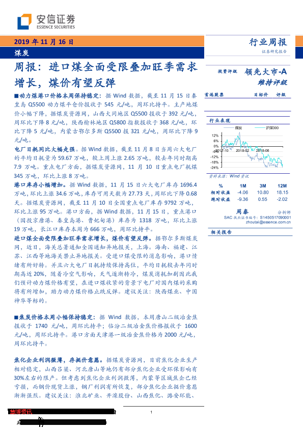 【安信证券】【20191116】20191116-安信证券-煤炭周报:进口煤全面受限叠加旺季需求增长,煤价有望反弹-27页
