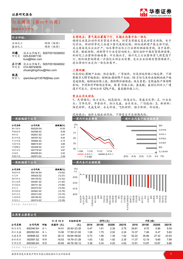 【华泰证券】【20191117】20191117-华泰证券-基础化工 石油化工行业周报(第四十六周)-10页