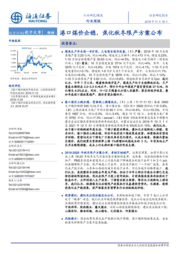 【海通证券】【20191118】煤炭行业周报:港口煤价企稳,焦化秋冬限产方案公布-2页