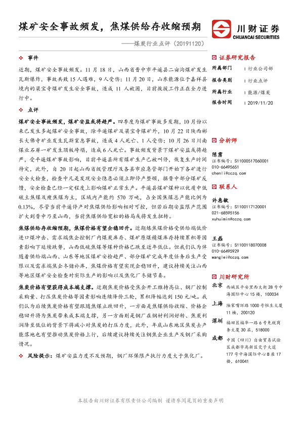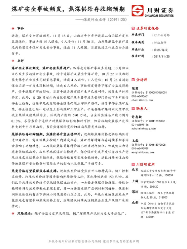 【川财证券】【20191120】煤矿安全事故频发,焦煤供给存收缩预期-2页