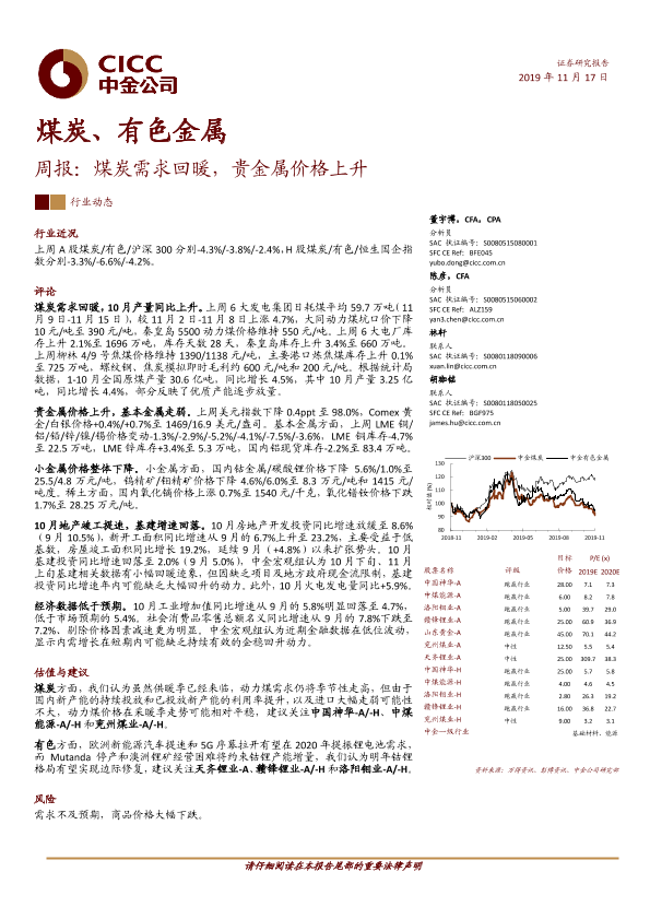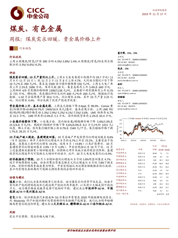 【中金公司】【20191117】煤炭、有色金属周报:煤炭需求回暖,贵金属价格上升-15页