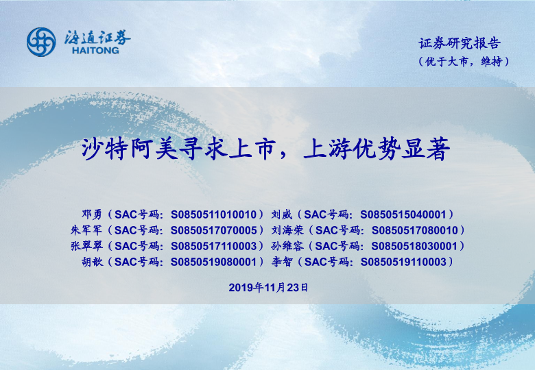 【海通证券】【20191123】石油化工行业:沙特阿美寻求上市,上游优势显著-20页