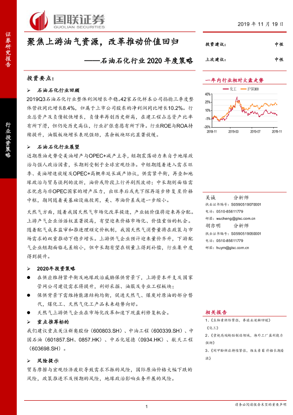 【国联证券】【20191119】石油石化行业2020年度策略:聚焦上游油气资源,改革推动价值回归-27页