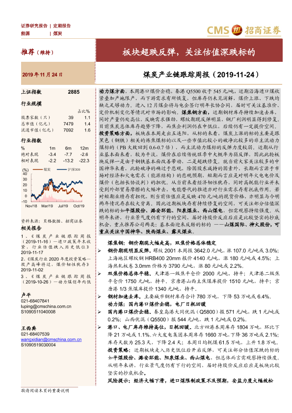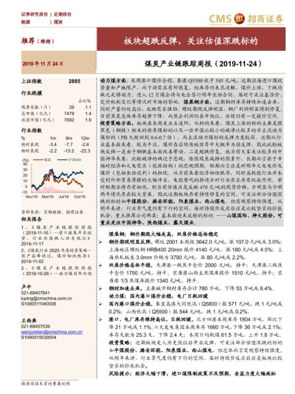【海通证券】【20191124】煤炭产业链跟踪周报:板块超跌反弹,关注估值深跌标的-21页