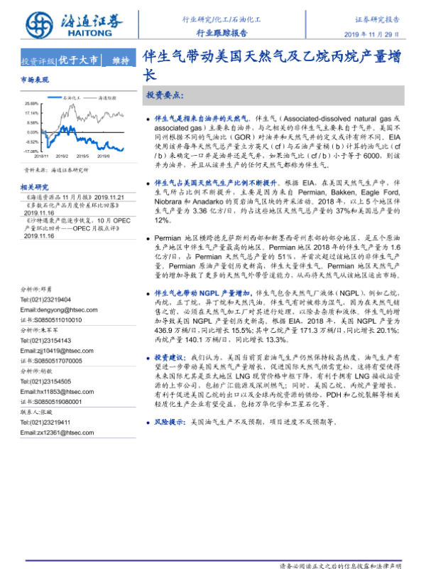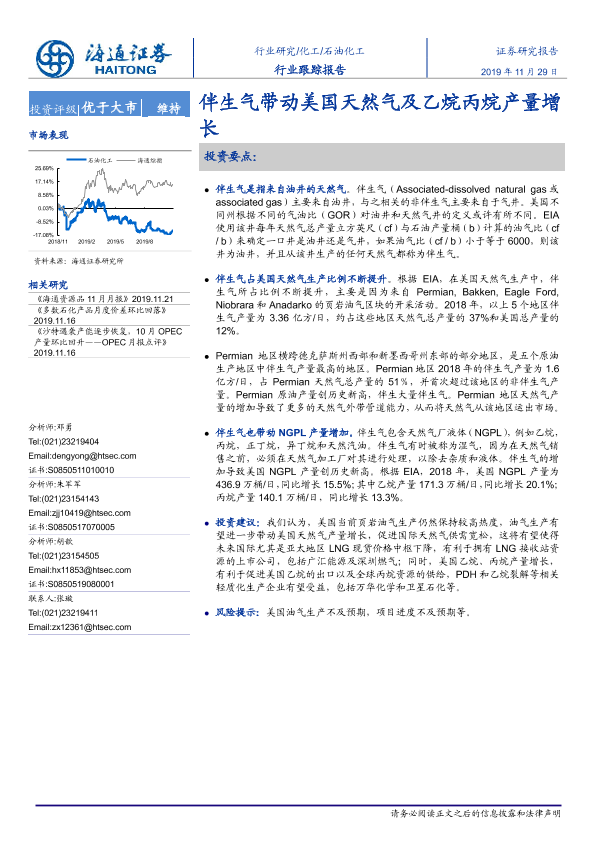 【海通证券】【20191129】石油化工:行业跟踪报告-伴生气带动美国天然气及乙烷丙烷产量增长-3页