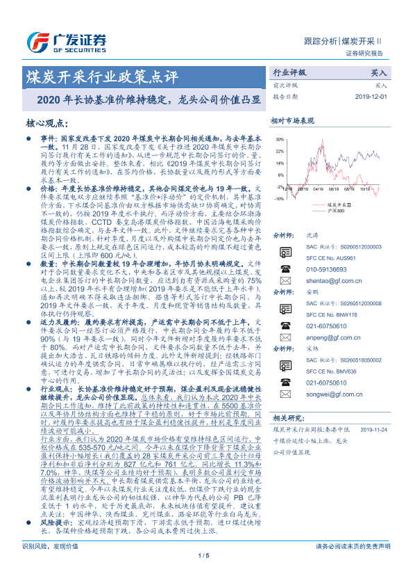 【广发证券】【20191201】2020年长协基准价维持稳定,龙头公司价值凸显-5页