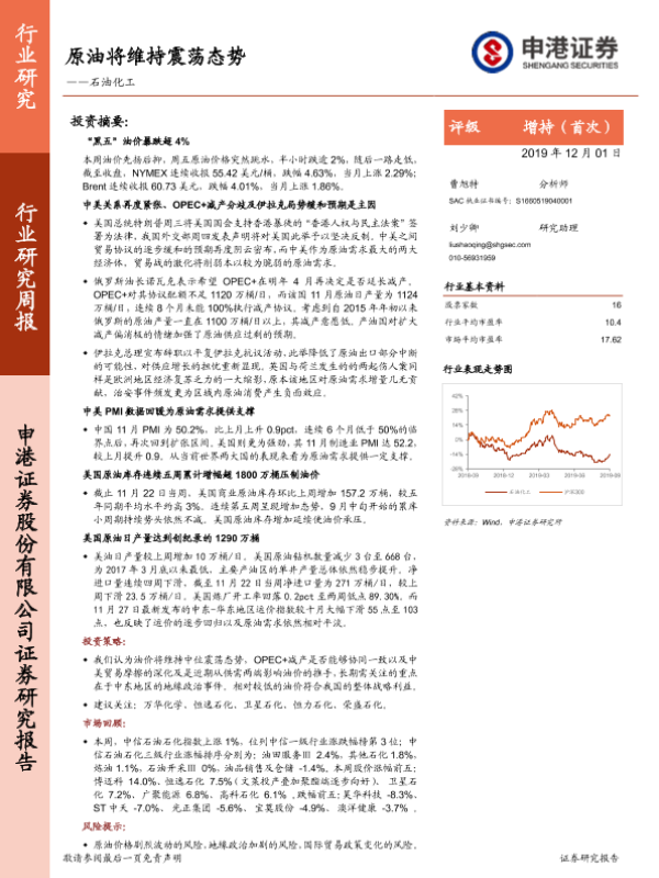 【申港证券】【20191201】石油化工:原油将维持震荡态势-25页