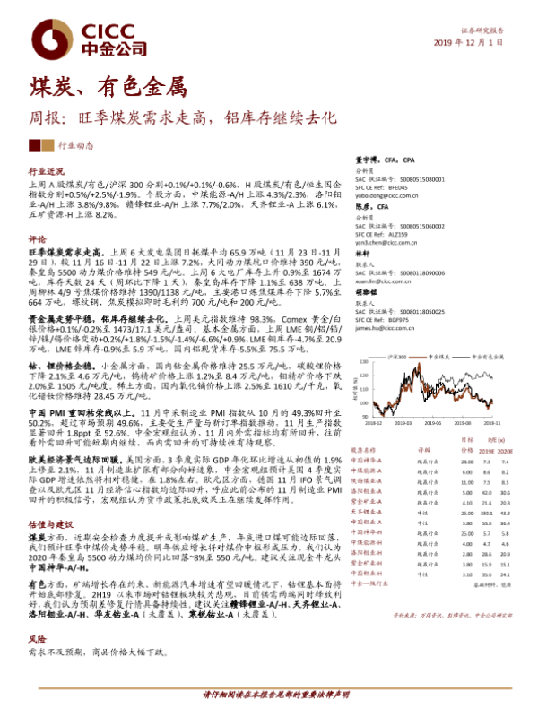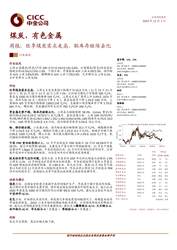 【中金公司】【20191201】煤炭、有色金属周报:旺季煤炭需求走高,铝库存继续去化-15页