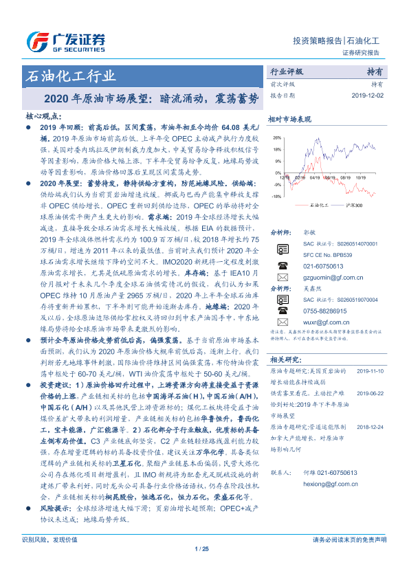 【广发证券】【20191202】2020年原油市场展望:暗流涌动,震荡蓄势-25页