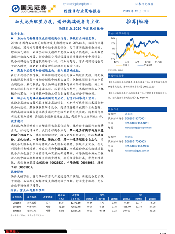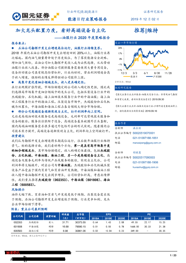【国元证券】【20191202】加大龙头配置力度,看好高端设备自主化——油服行业2020年度策略报告-23页