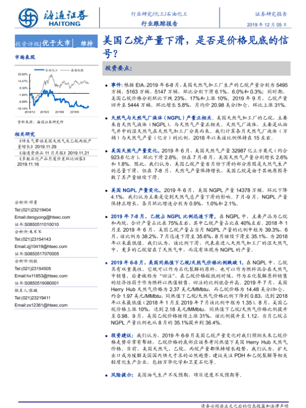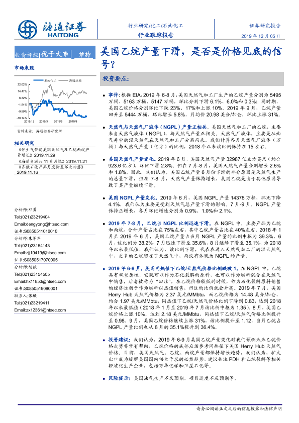 【海通证券】【20191205】海通证券-石油化工行业跟踪报告:美国乙烷产量下滑,是否是价格见底的信号?-4页