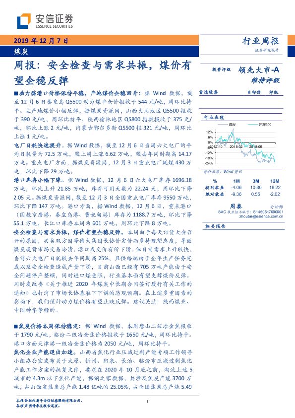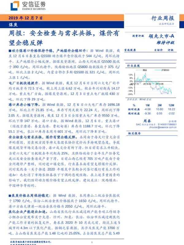 【安信证券】【20191207】20191207-安信证券-煤炭周报:安全检查与需求共振,煤价有望企稳反弹-26页