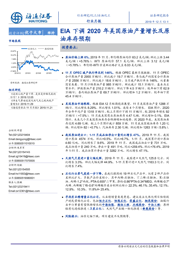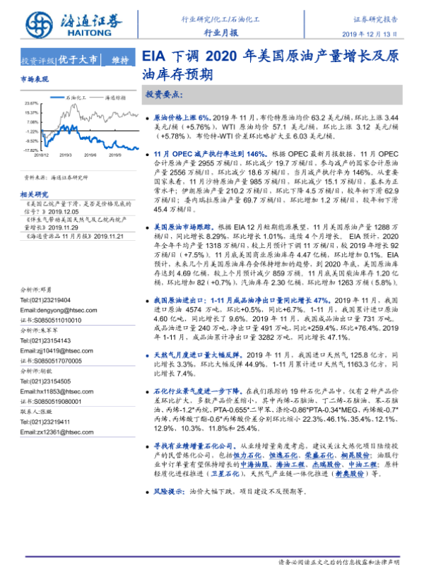 【海通证券】【20191213】20191213-海通证券-石油化工行业月报:EIA下调2020年美国原油产量增长及原油库存预期-9页