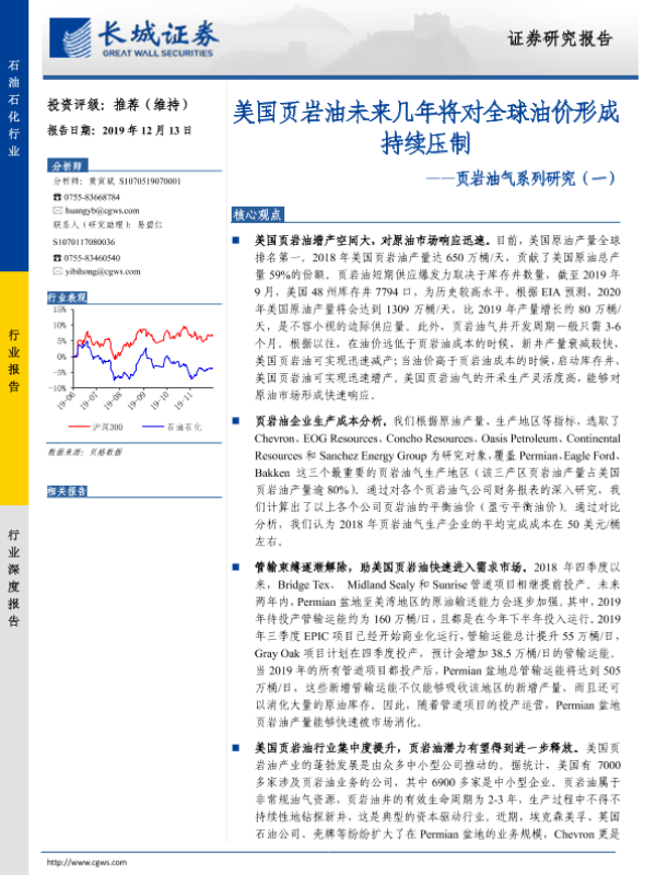 【长城证券】【20191213】美国页岩油未来几年将对全球油价形成持续压制-28页