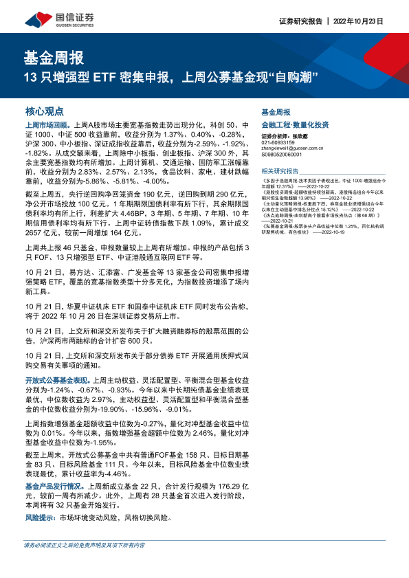 【国信证券】【20221023】基金周报:13只增强型ETF密集申报,上周公募基金现“自购潮”-22页