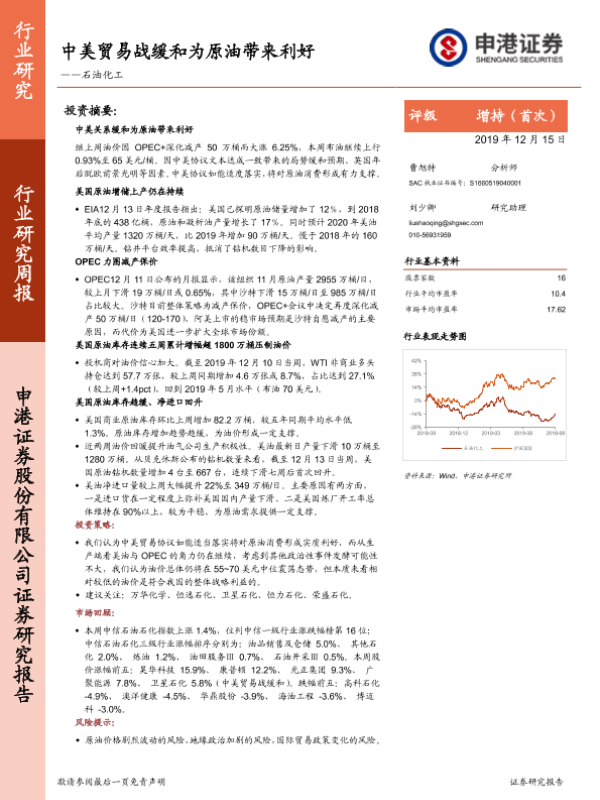 【申港证券】【20191215】20191215-申港证券-石油化工行业研究周报:中美贸易战缓和为原油带来利好-25页