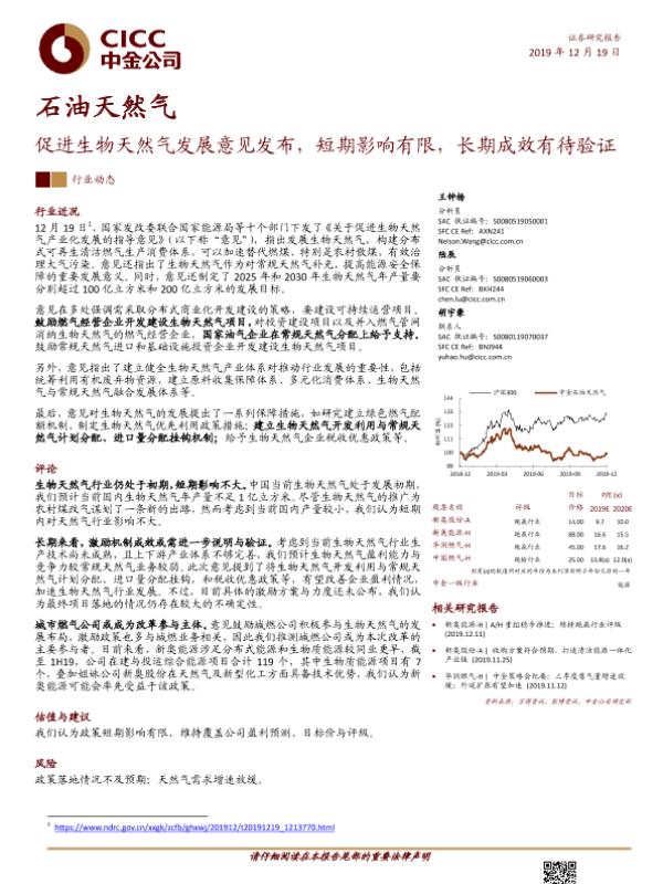 【中金公司】【20191219】石油天然气:促进生物天然气发展意见发布,短期影响有限,长期成效有待验证-5页
