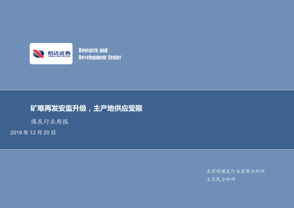 【信达证券】【20191220】20191220-信达证券-煤炭行业周报:矿难再发安监升级,主产地供应受限-24页