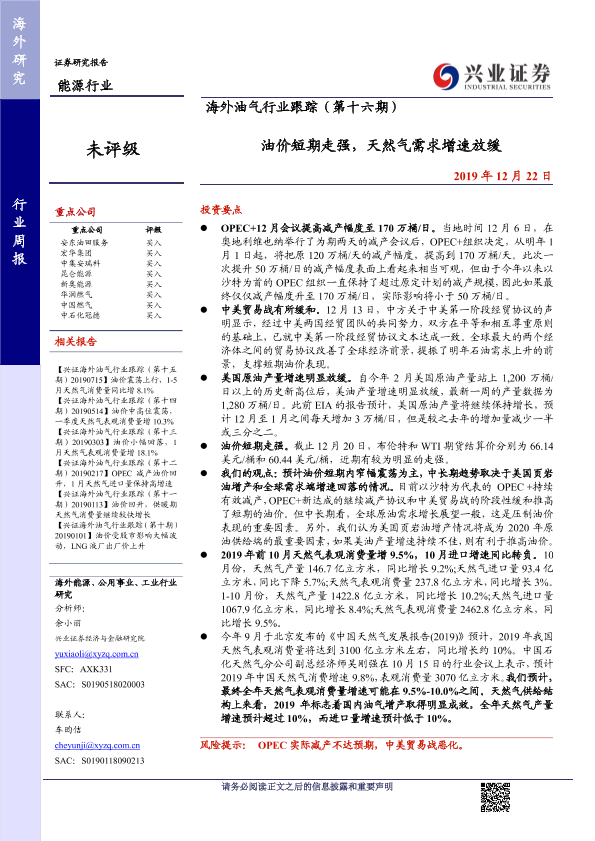 【兴业证券】【20191222】油价短期走强,天然气需求增速放缓-13页
