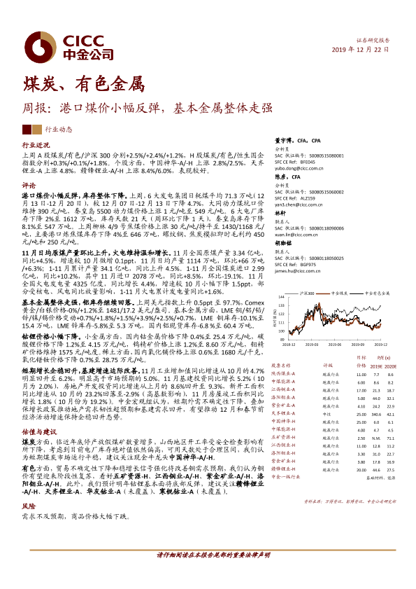 【中金公司】【20191222】20191222-中金公司-煤炭、有色金属周报:港口煤价小幅反弹,基本金属整体走强-15页