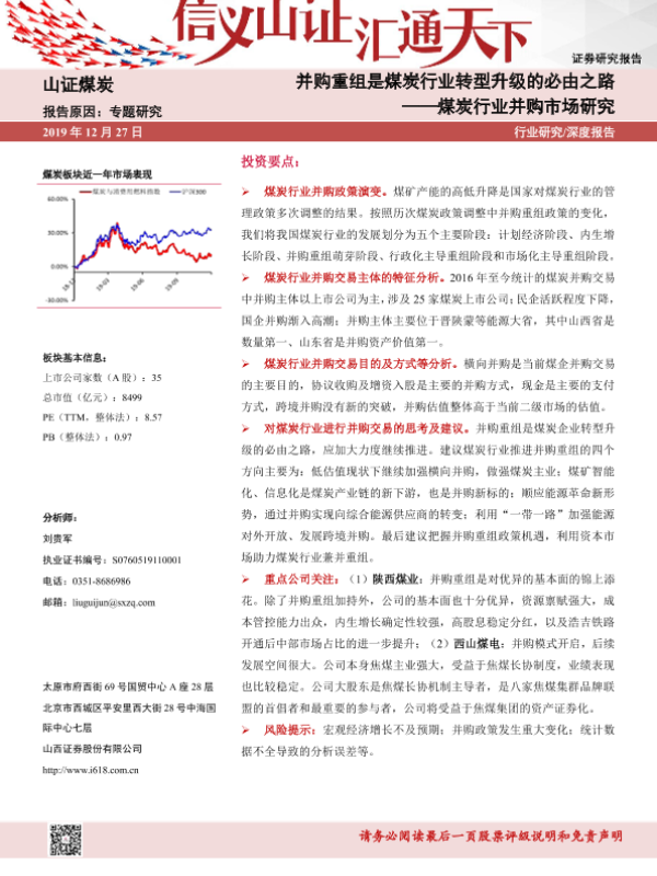 【山西证券】【20191227】并购重组是煤炭行业转型升级的必由之路——煤炭行业并购市场研究-22页