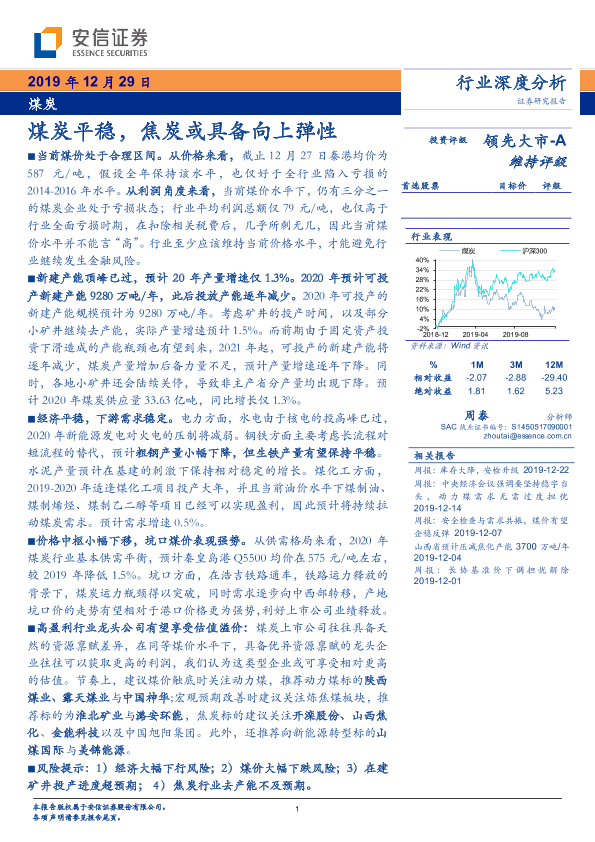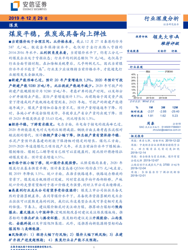 【安信证券】【20191229】煤炭行业深度分析:煤炭平稳,焦炭或具备向上弹性-37页