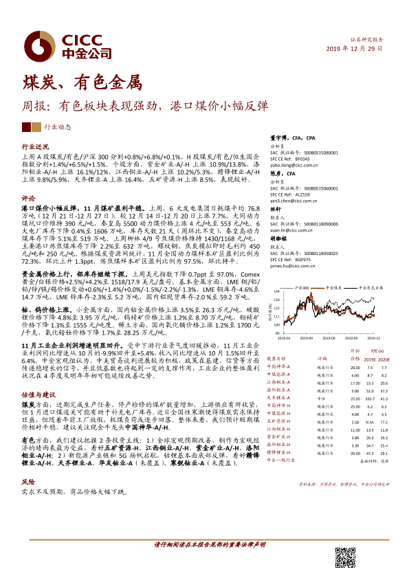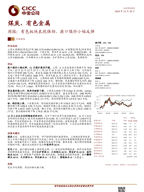 【中金公司】【20191229】20191229-中金公司-煤炭、有色金属周报:有色板块表现强劲,港口煤价小幅反弹-15页