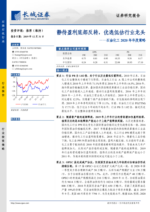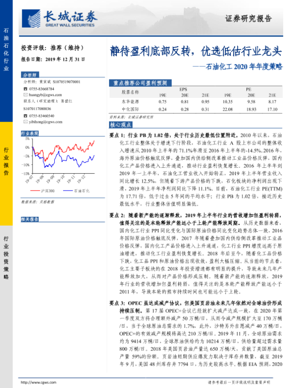 【长城证券】【20191231】20191231-长城证券-石油化工2020年年度策略:静待盈利底部反转,优选低估行业龙头-36页