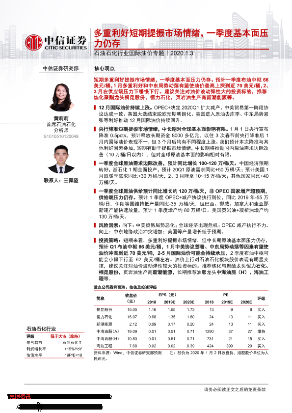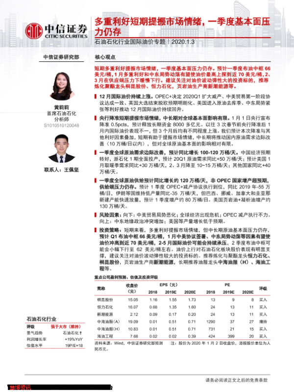 【中信证券】【20200103】石油石化行业国际油价专题:多重利好短期提振市场情绪,一季度基本面压力仍存-18页