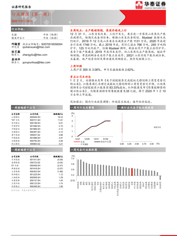 【华泰证券】【20200105】20200105-华泰证券-采掘-煤炭开采Ⅱ行业(第一周)-12页