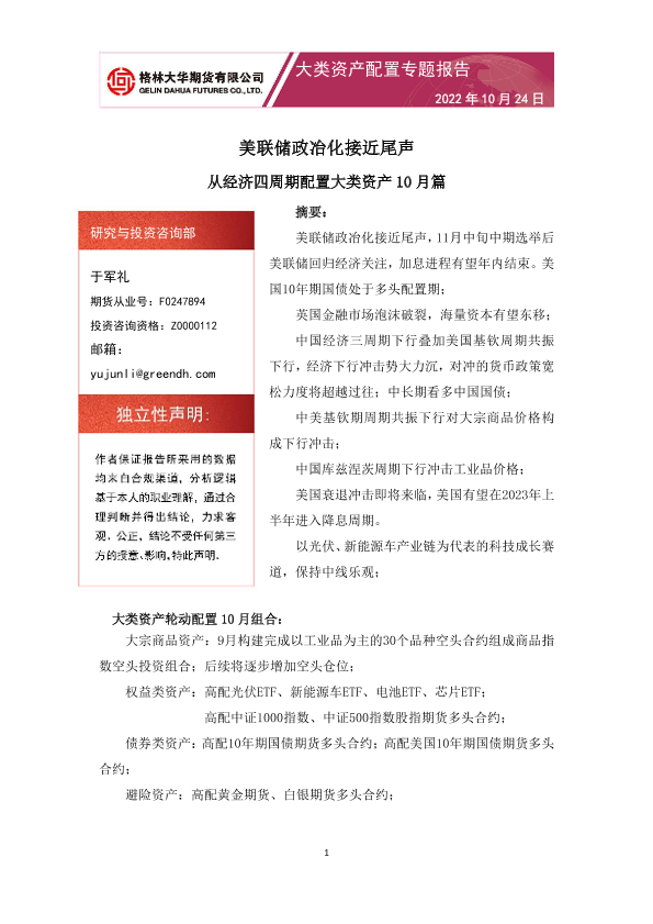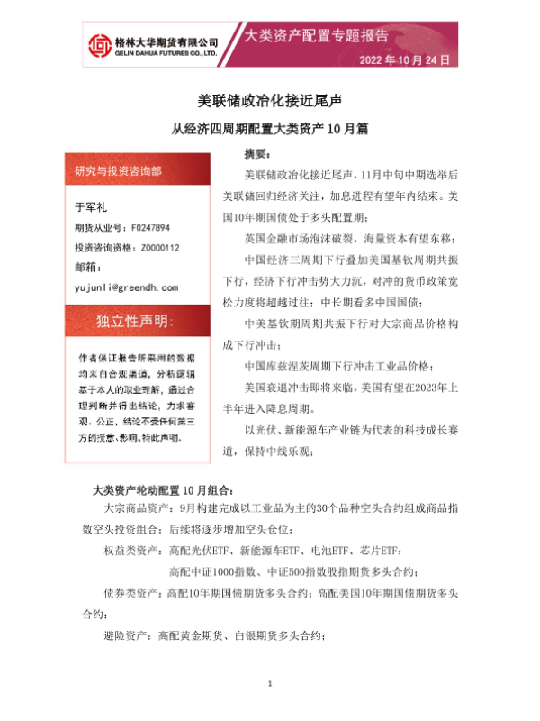 【格林大华期货】【20221024】大类资产配置专题报告:从经济四周期配置大类资产10月篇-15页