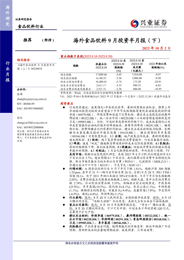 【兴业证券】【20231002】海外食品饮料行业9月投资半月报(下)-19页