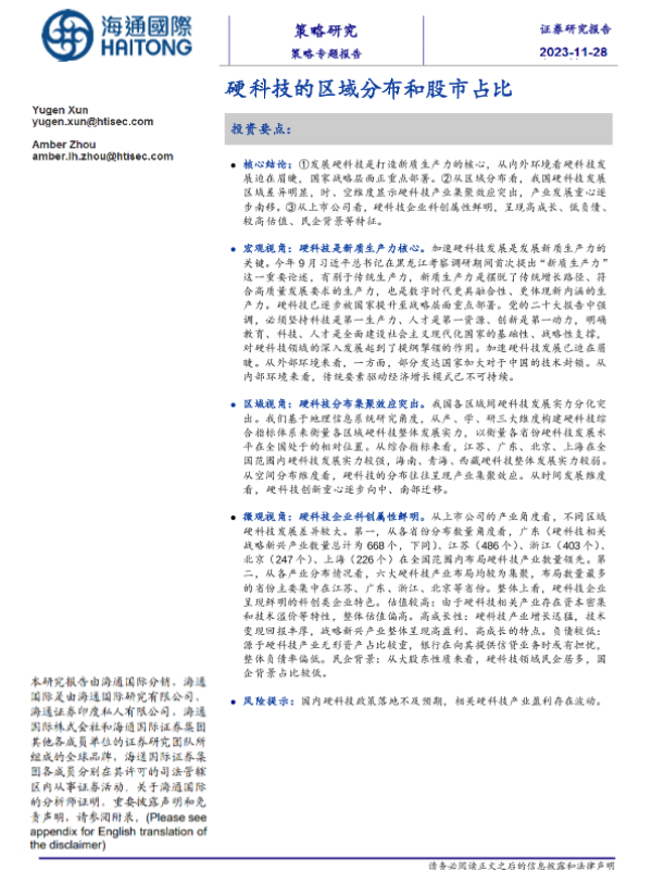 【海通国际】【20231128】策略专题报告:硬科技的区域分布和股市占比-19页