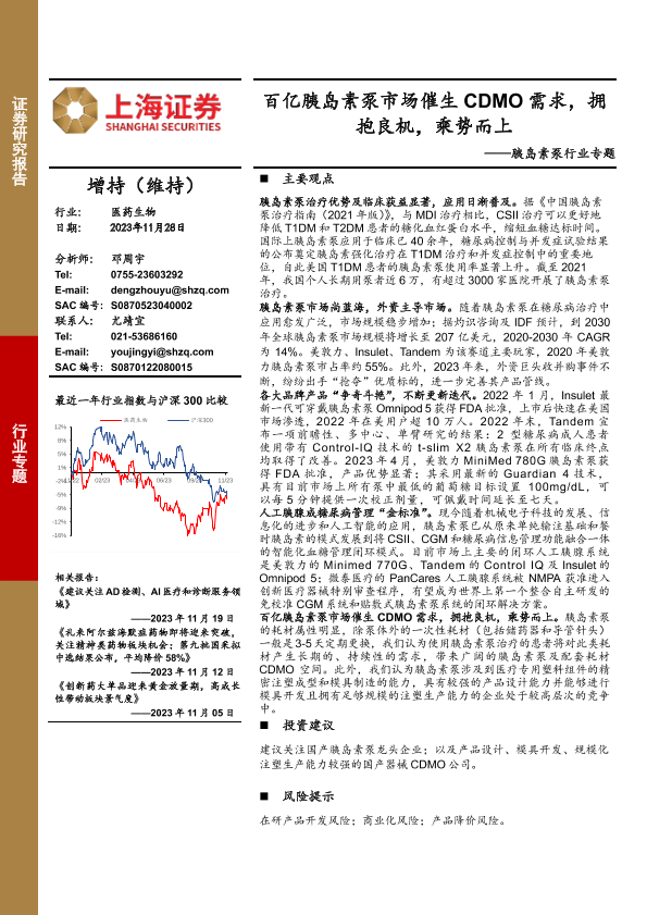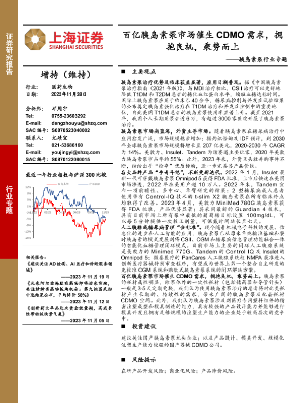 【上海证券】【20231128】胰岛素泵行业专题:百亿胰岛素泵市场催生CDMO需求,拥抱良机,乘势而上-20页