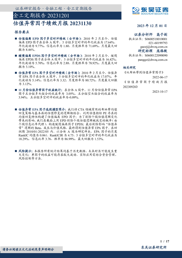 【东吴证券】【20231201】金工定期报告:估值异常因子绩效月报-17页