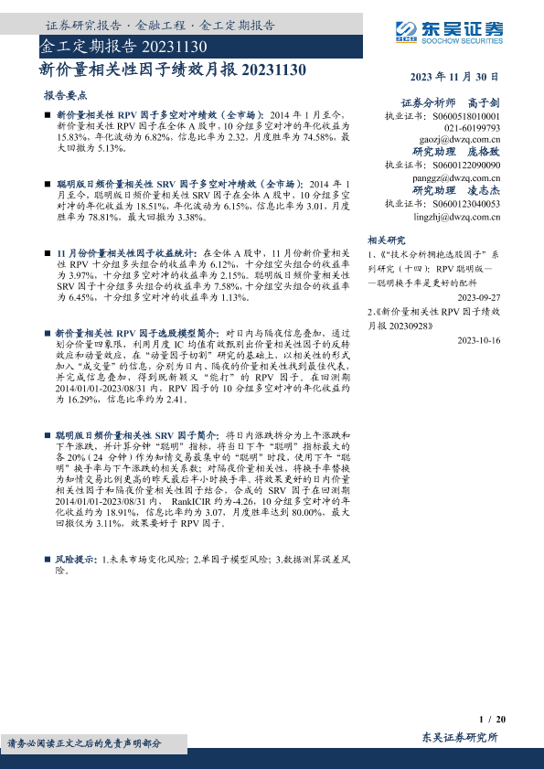 【东吴证券】【20231130】金工定期报告:新价量相关性因子绩效月报-20页