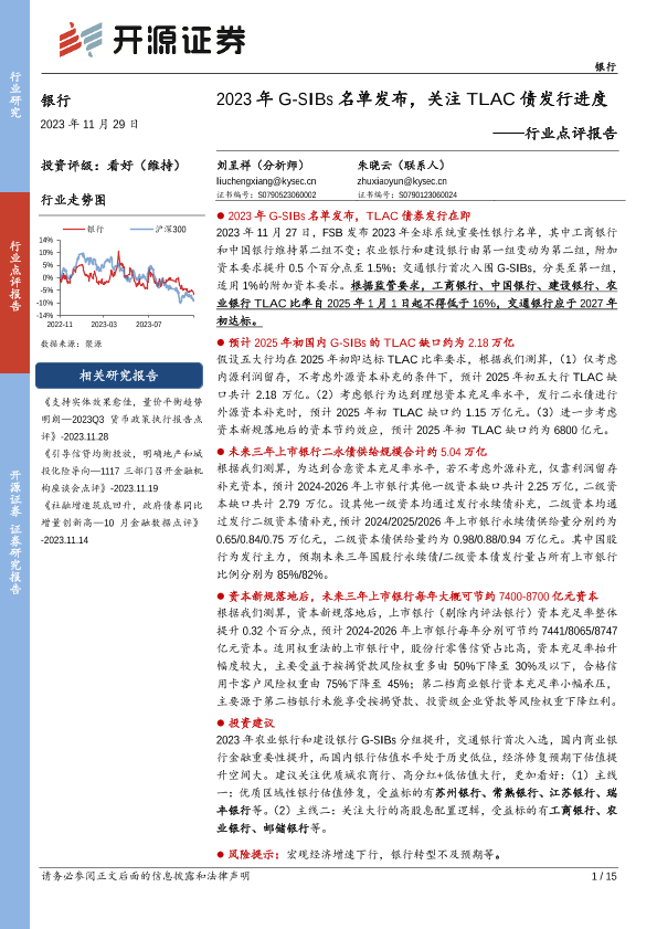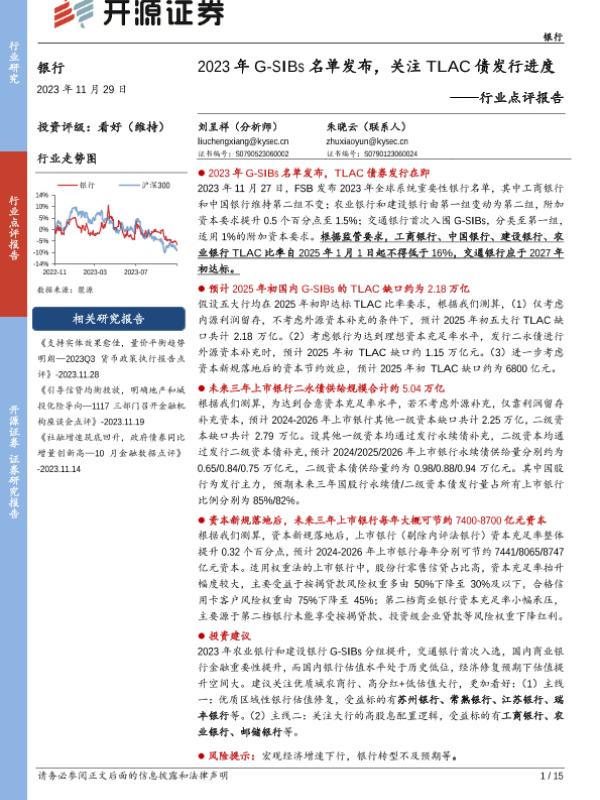 【开源证券】【20231129】银行行业点评报告:2023年G-SIBs名单发布,关注TLAC债发行进度-15页
