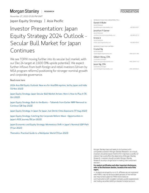 【Morgan Stanley】【20231127】Japan Equity Strategy 2024 Outlook - Secular Bull Market for Japan Continues-69页