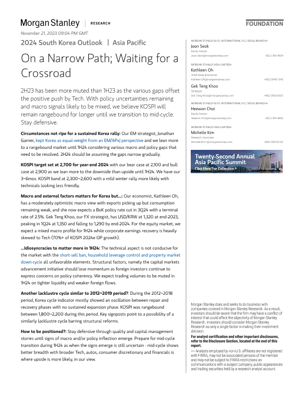 【Morgan Stanley】【2024】2024 South Korea Outlook On a Narrow Path; Waiting for a Crossroad-56页