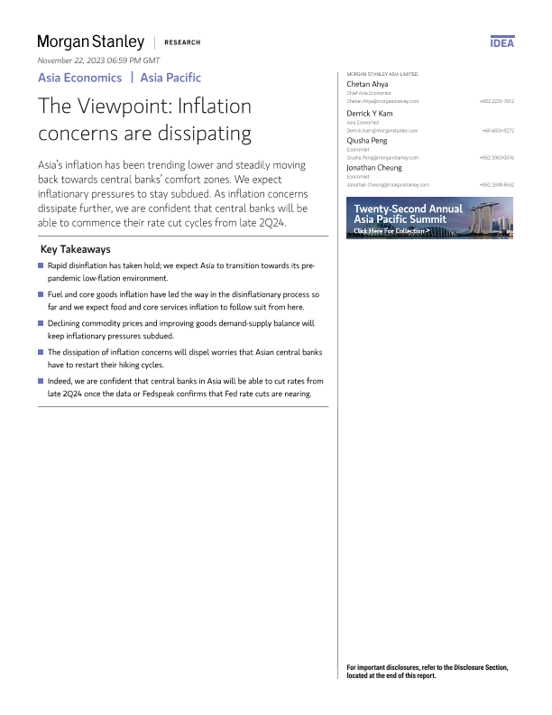 【Morgan Stanley】【2023】Asia Economics The Viewpoint Inflation concerns are dissipating-15页