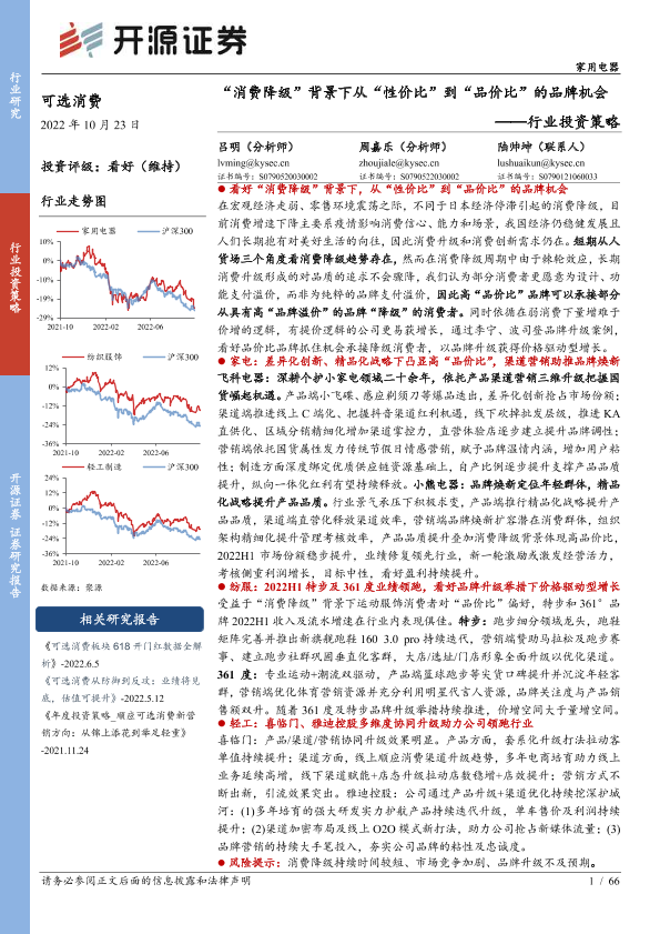 【开源证券】【20221023】家用电器行业投资策略:“消费降级”背景下从“性价比”到“品价比”的品牌机会-66页
