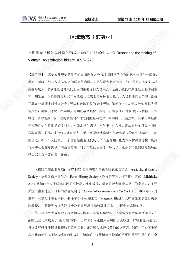 橡胶工业 殖民地研究 生态史 资源利用 越南历史