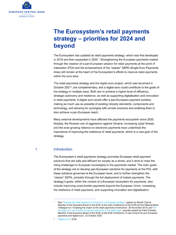 【European Central Bank】【202311】欧洲央行-欧元体系零售支付策略-9页