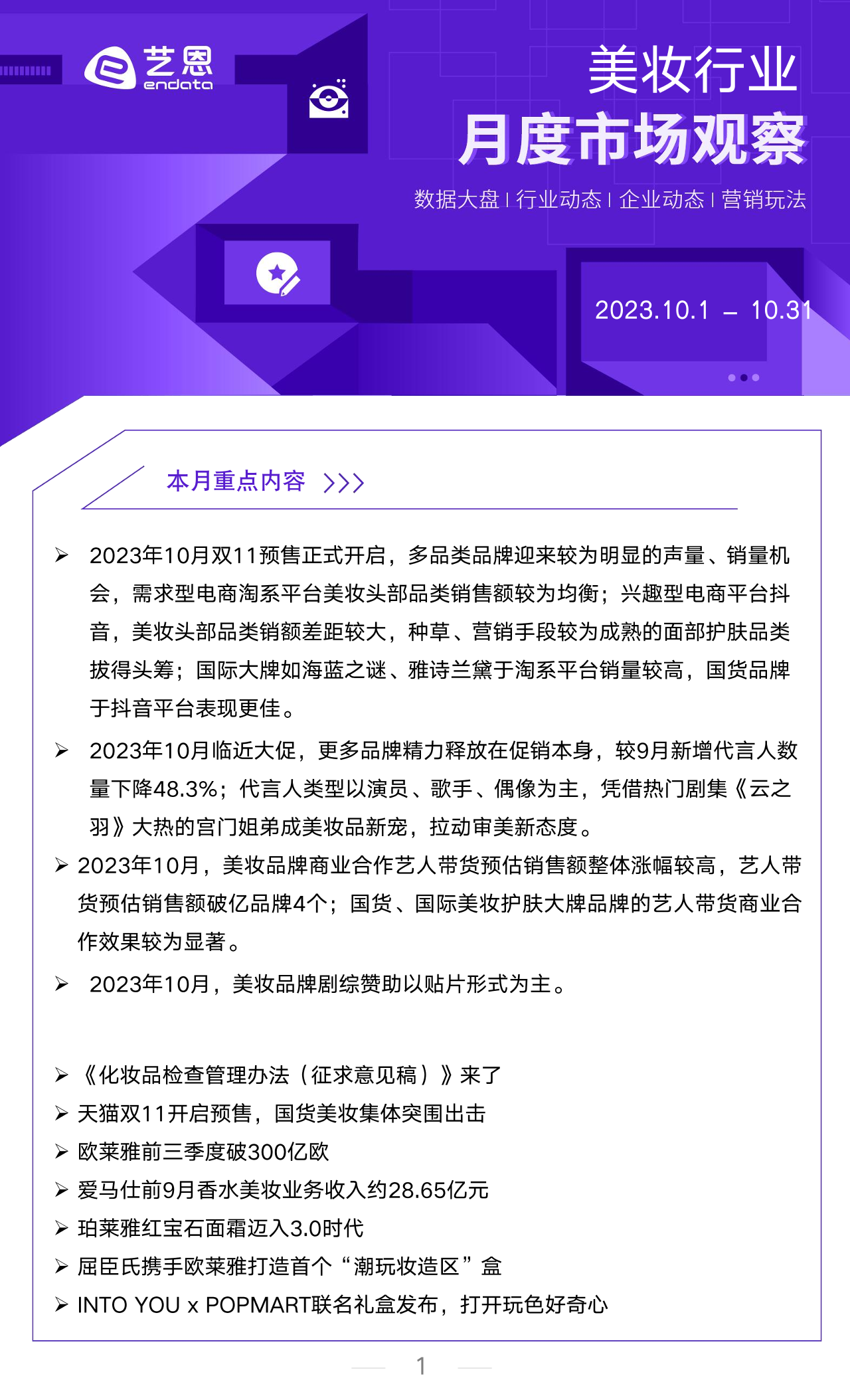 【艺恩ENDATA】【202311】艺恩-2023年10月美妆行业洞察报告-10页