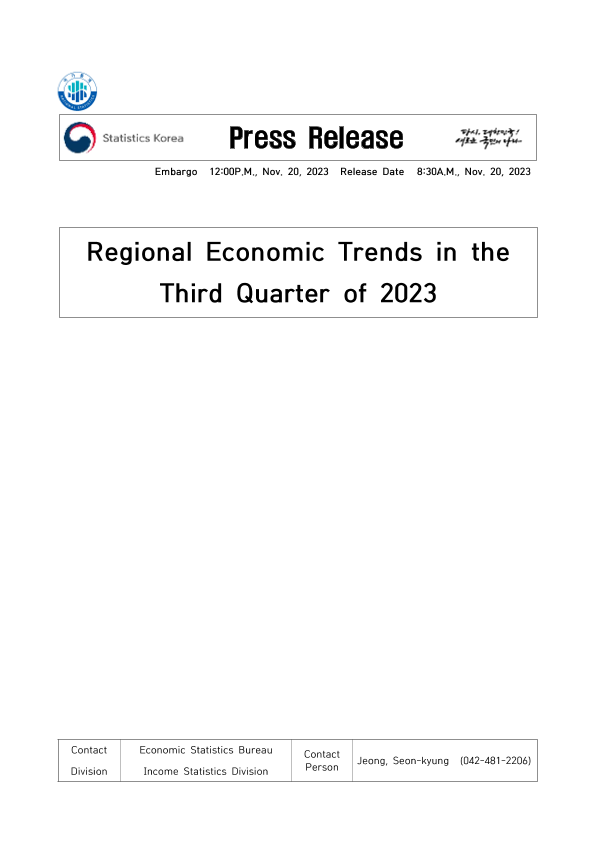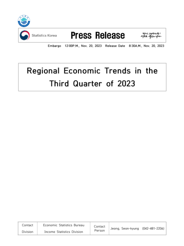 【韩国统计厅】【20231120】2023年第三季度区域经济趋势-6页