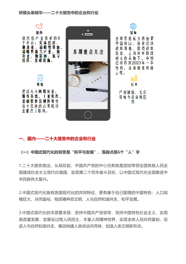 【慧博智能投研】【20221027】慧博研报炼金之研报头条精华:二十大报告中的企业和行业-24页