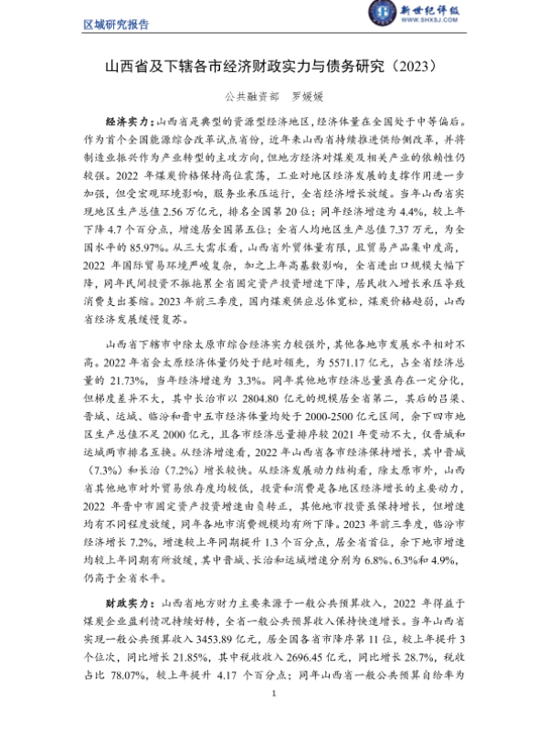 【新世纪评级】【2023】山西省及下辖各市经济财政实力与债务研究(2023)-30页