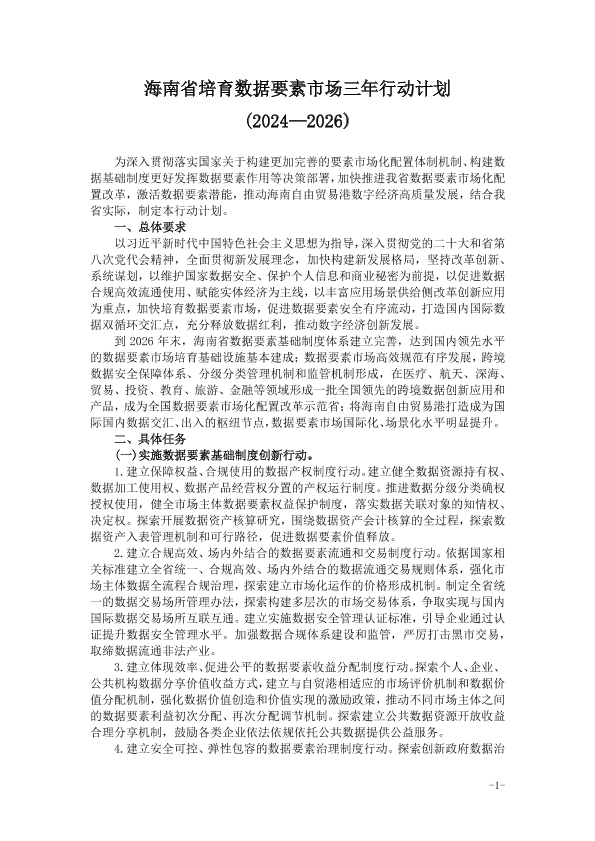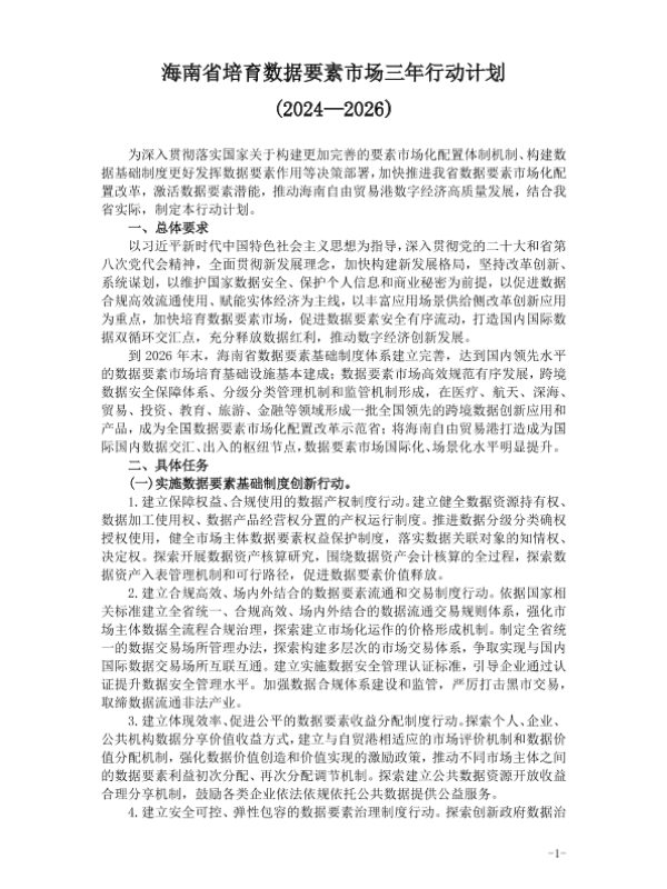 【海南省政府】【2024】海南省培育数据要素市场三年行动计划(2024—2026)-5页