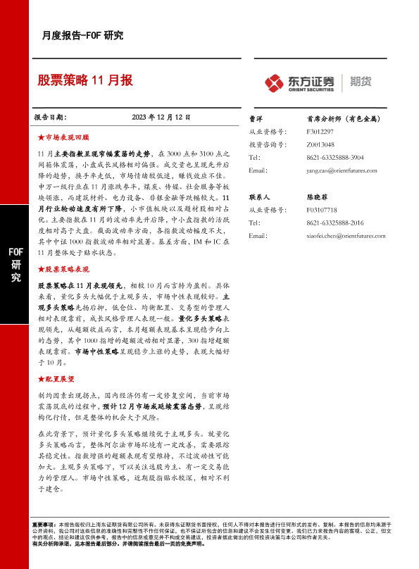 【东证期货】【20231212】FOF研究月度报告:股票策略11月报-16页